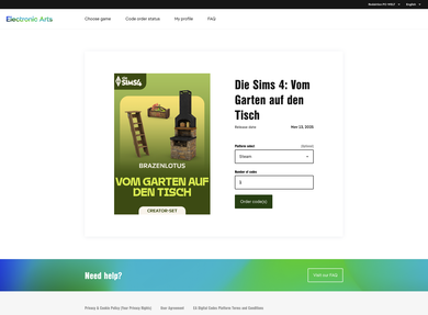 Electronic Arts aus Kalifornien – 7 Milliarden Dollar Umsatz, Nasdaq-100, globale Präsenz. Wir entwickelten das Bestellsystem für Gamecodes, das Influencer, Partner und Mitarbeiter weltweit nutzen. Eine Partnerschaft, die seit 2008 hält – von der Zusammenarbeit als Subunternehmer bis zum direkten Kontakt mit der Corporation in den USA.
